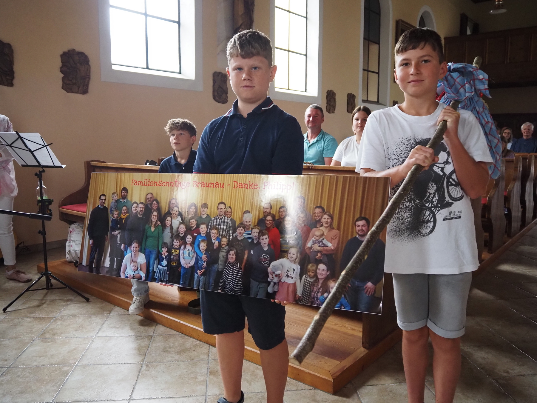 Beim letzten Familiensonntag vor der Sommerpause durften wir einen stimmungsvollen Gottesdienst miteinander feiern. Gleichzeitig hieß es Abschied nehmen von Kaplan Philipp, der ab 1. September seinen Dienst in der Pfarrgemeinde Gurten antreten wird. Als Zeichen unseres Dankes und der Verbundenheit überreichte ihm die Familiensonntagsgemeinschaft ein gemeinsames Erinnerungsfoto.
