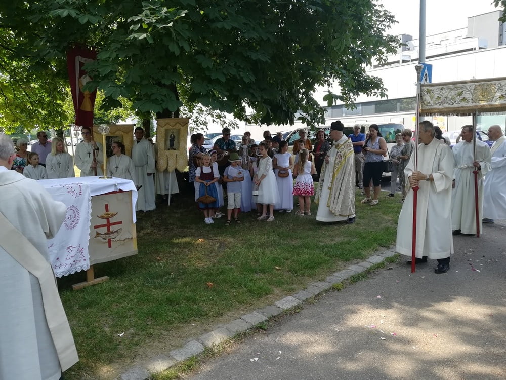Es begann mit einer Eucharistiefeier am Bellevue Park. Anschließend zog die Prozession entlang der Glimpfingerstraße, über die Spallerhofstraße in die Wallenbergstraße zur Kirche St. Peter. Den feierlichen Abschluss bildete der Segen in alle Himmelsrichtungen am Kirchenplatz.