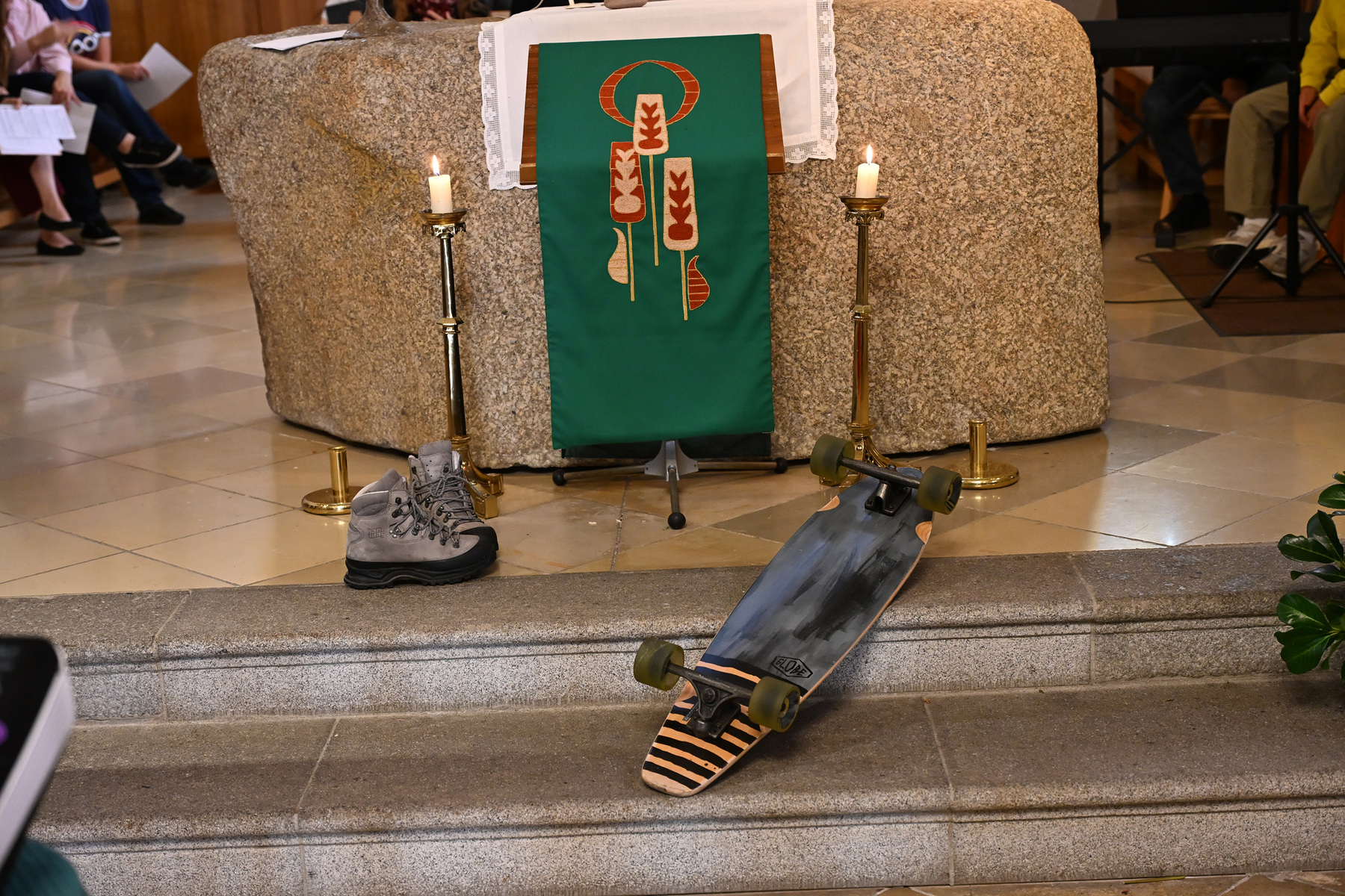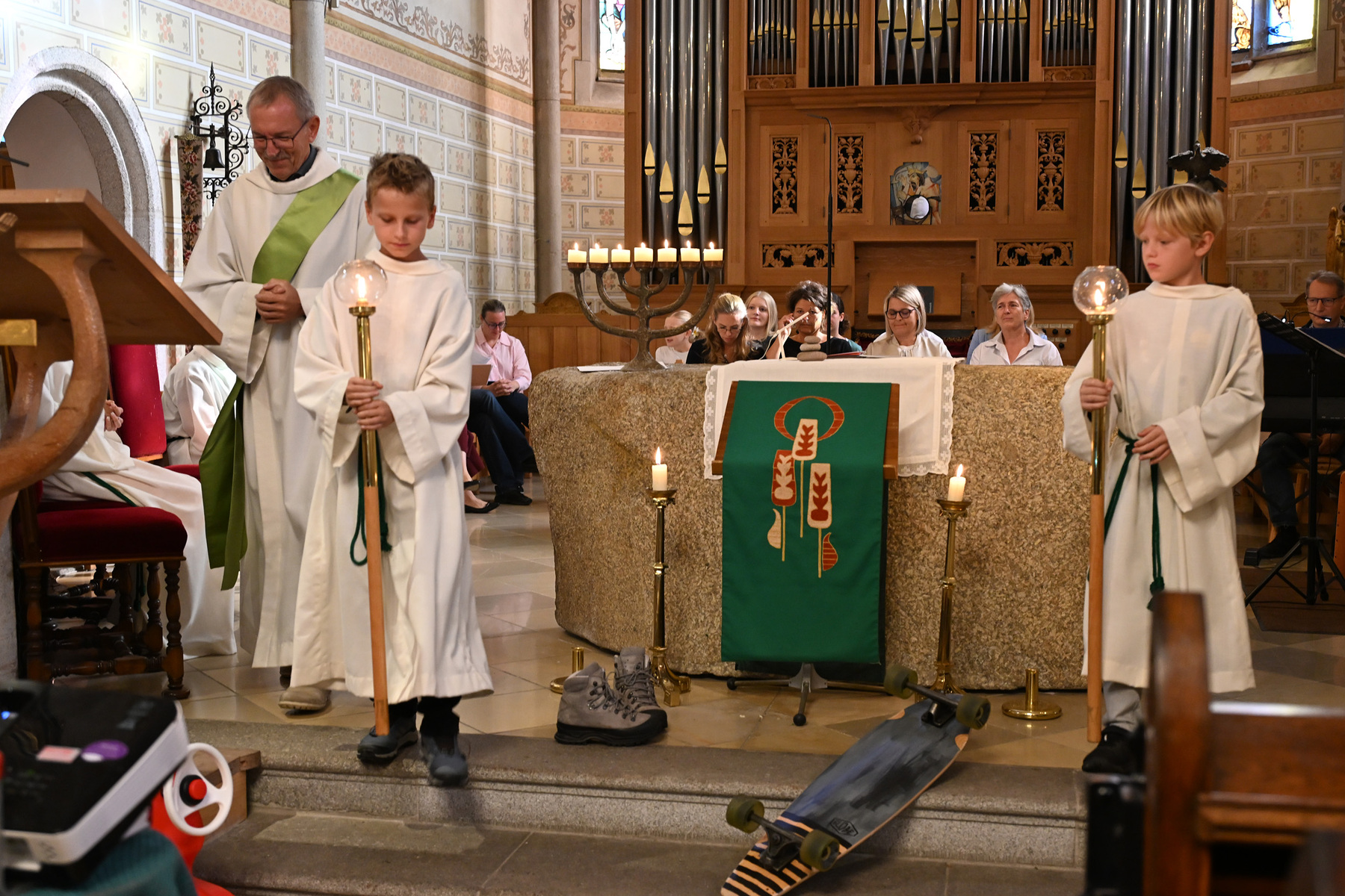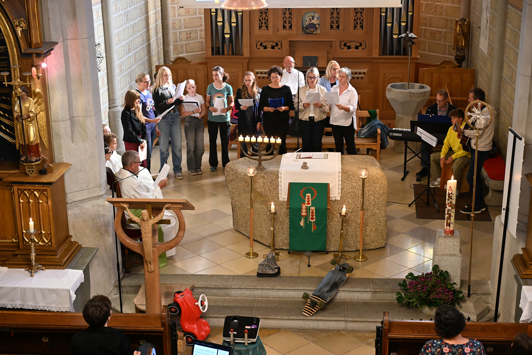 Die Kirche geschmückt mit Fahrrädern, Longboards, Wanderschuhen und was man sonst noch am Weg braucht, feierte das FaGoDi-Team am 21. September 2025 mit Pastoralvorstand Wolfgang Froschauer einen Familiengottesdienst - mit vielen kreativen Gestaltungselementen und großartiger Musik.